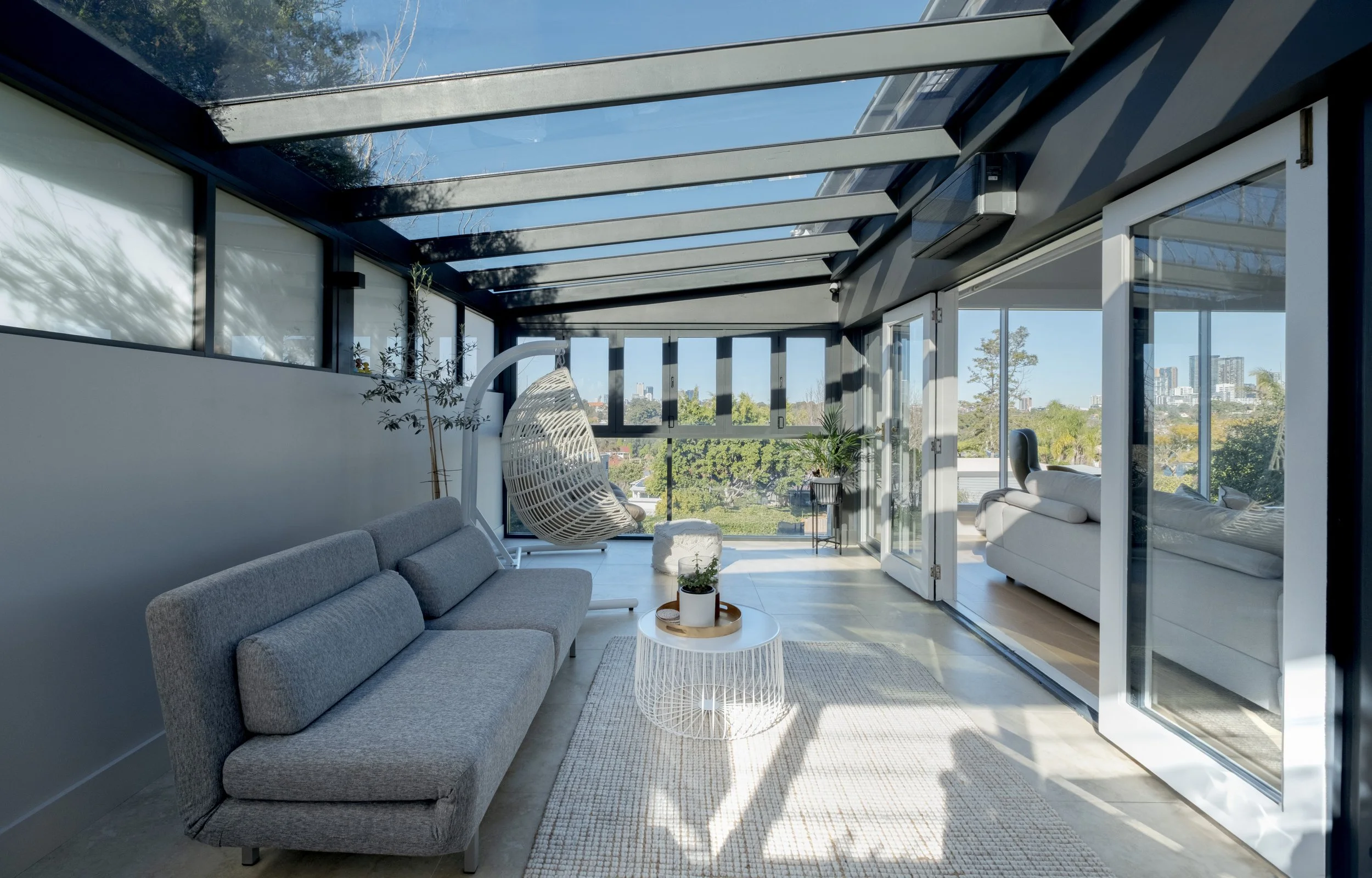 The existing house was an older style property that had been renovated. The brief called for an overhaul of the entire house in terms of planning and style, to create a unified family home with a consistent aesthetic. Thoughtful re-planning and carefully crafted details combine to make a light, bright and practical family home. A new conservatory on the side of the house takes advantage of a north-eastern aspect, and panoramic city views to the south.